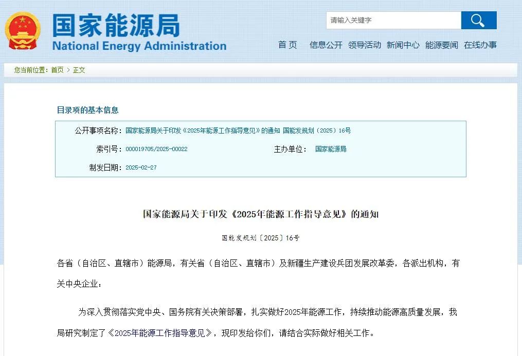 為深入貫徹落實黨中央、國務院有關決策部署,以更高標準踐行能源安全新戰略,扎實做好2025年能源工作,以能源高質量發展和高水平安全助力我國經濟持續回升向好,近日,國家能源局發布了《2025年能源工作指導意見》